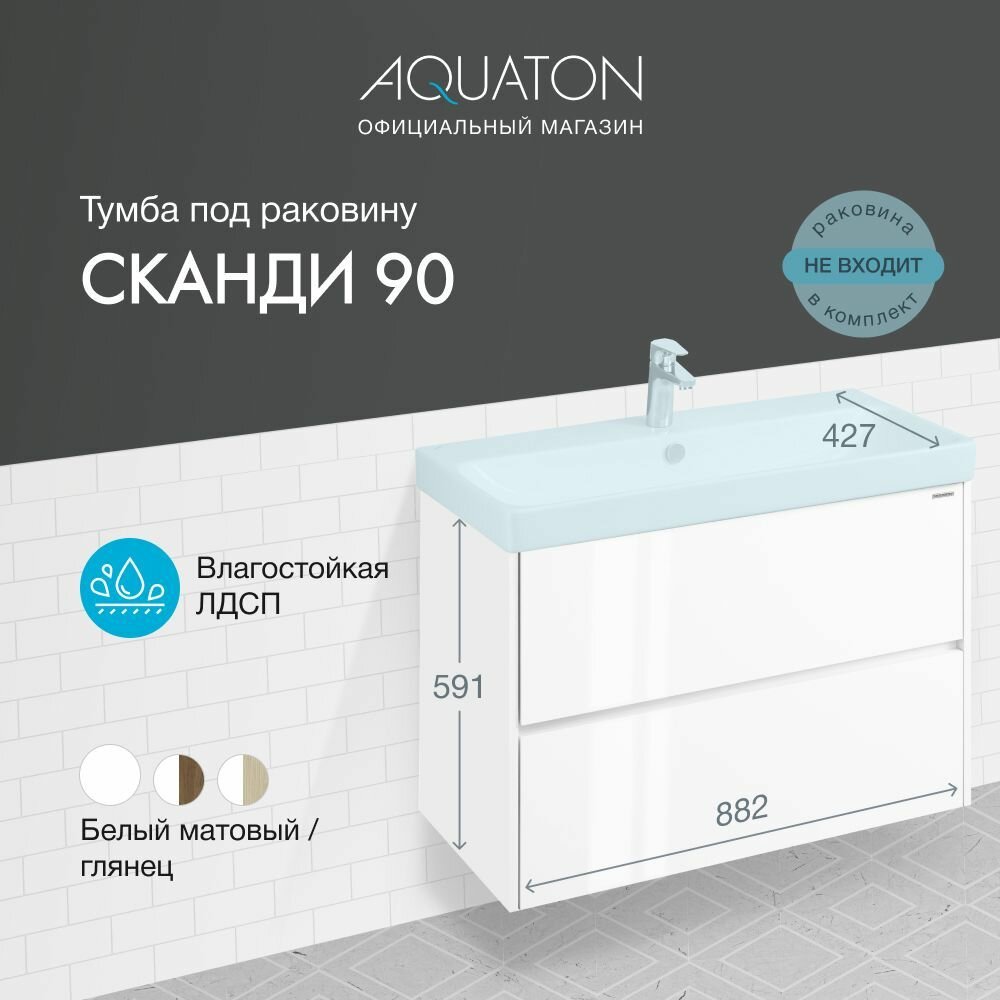 Мебель для ванной AQUATON Сканди 90 белый глянец, белый матовый