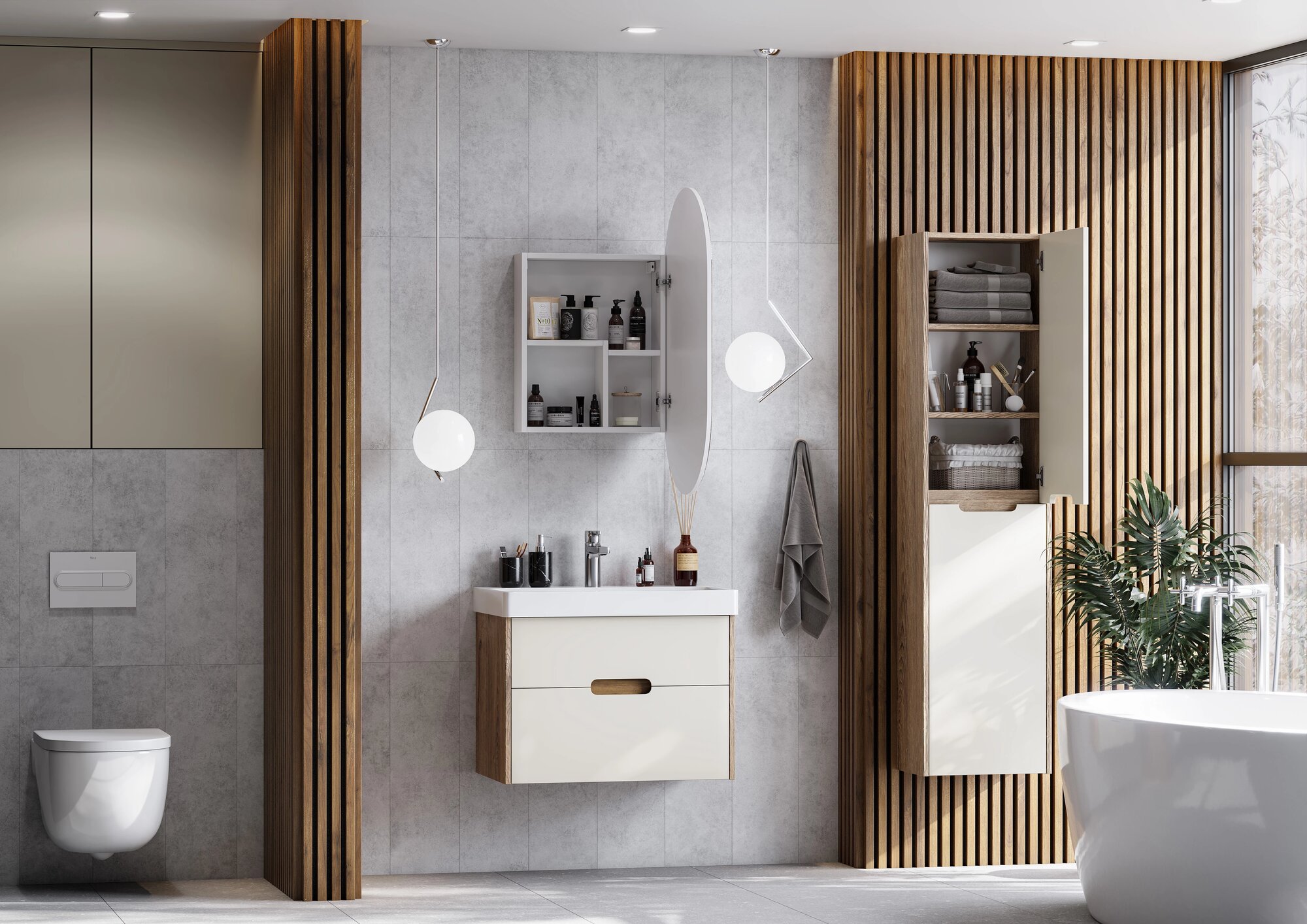 Тумба с раковиной AQUATON Оливия 70, бежевый/дуб велл