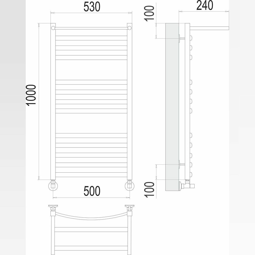 Енисей полотенцесушитель TERMINUS (530 мм / 1000 мм / 500 мм)