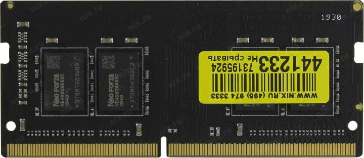 Оперативная память Neo Forza (NMSO440D82-2666EA10) SODIMM DDR4 4 ГБ - DDR4, 4 ГБx1 шт, 2666 МГц, PC21300, тайминги: 19-19-19 интересное: