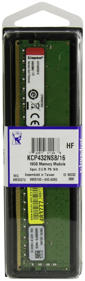 Оперативная память Kingston 16 ГБ DDR4 3200 МГц DIMM CL22 KCP432NS8/16