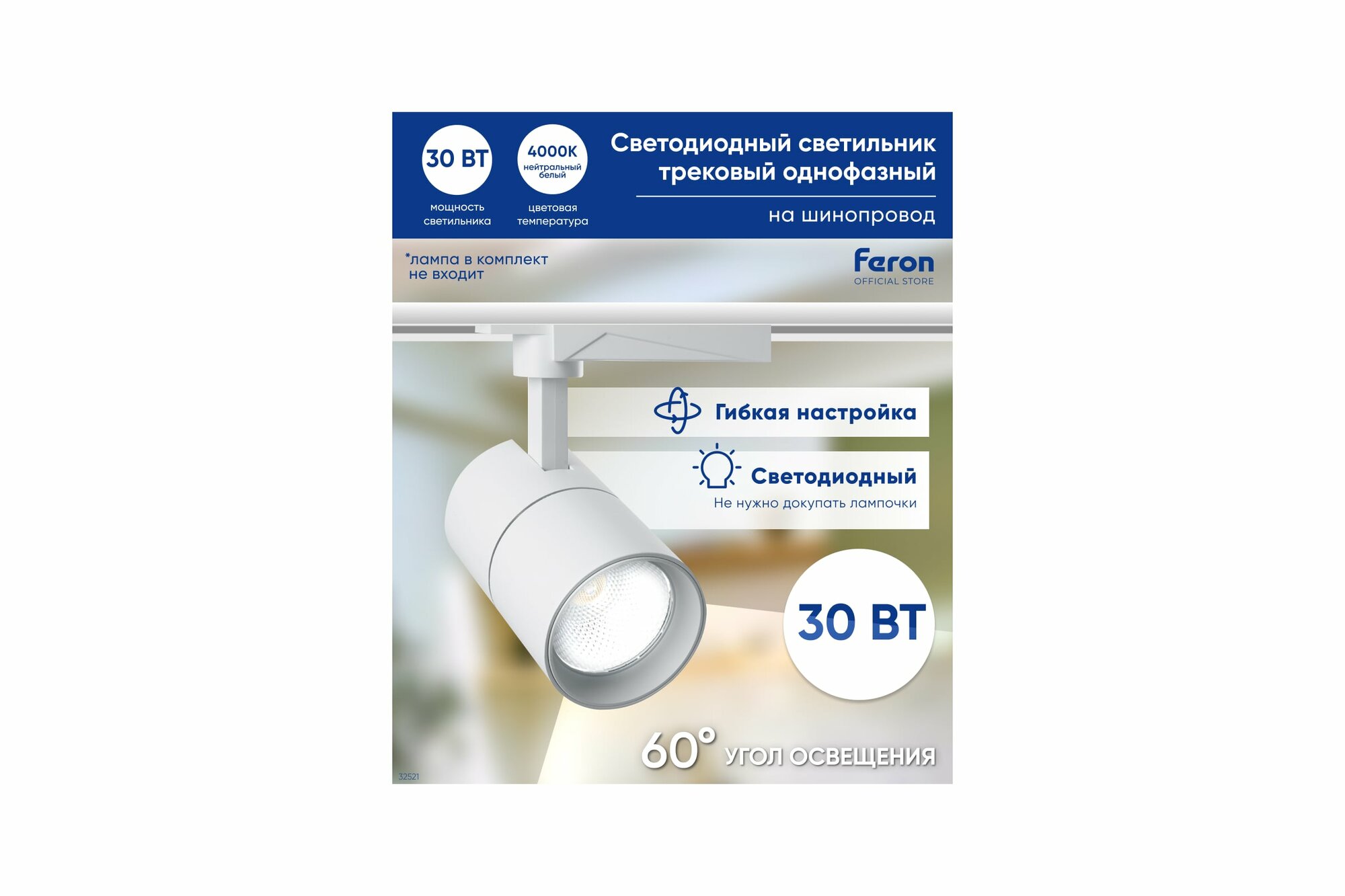Светодиодный светильник AL103 трековый однофазный на шинопровод 30W 4000K, 60 градусов, белый, FERON 32521 (1 шт.)