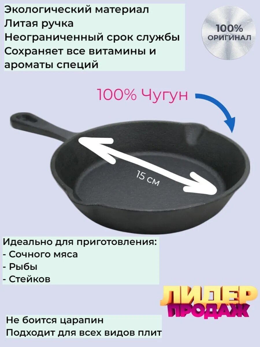 Сковорода чугунная 15 см с литой ручкой TM MY REAL IRON COOK