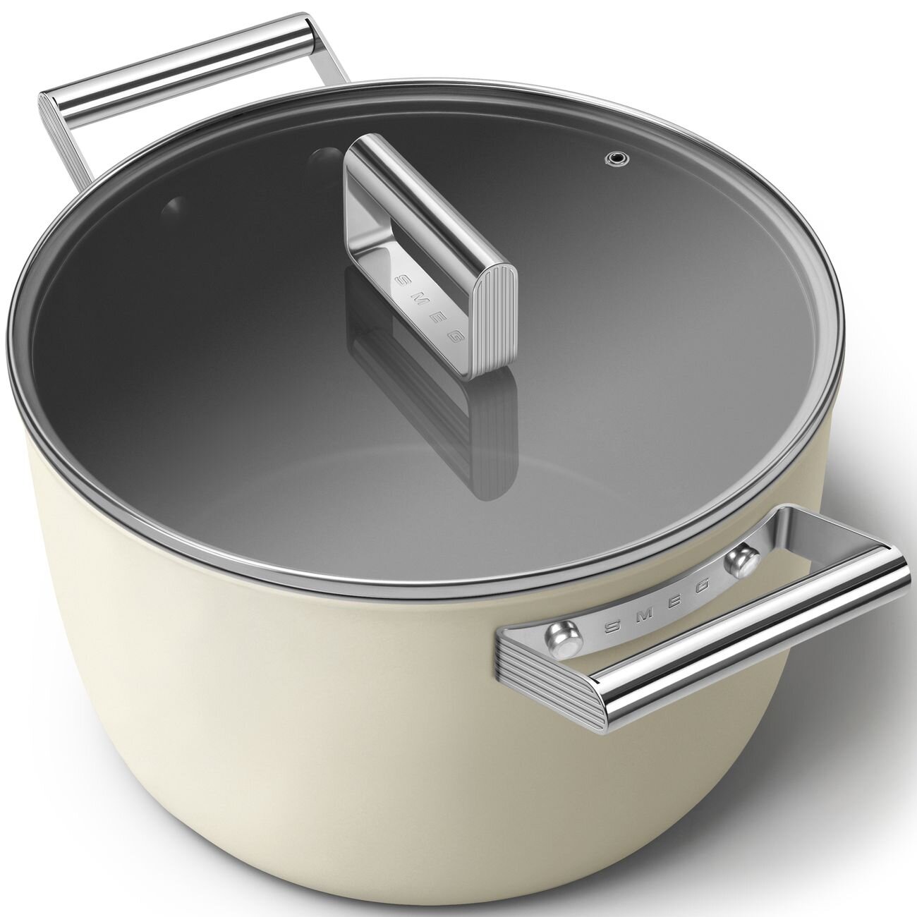 Кастрюля SMEG CKFC2611CRM с двумя ручками и крышкой 26 см, кремовая