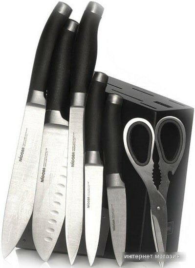 Набор из 5 кухонных ножей ножниц и блока для ножей с ножеточкой NADOBA RUT (722716)