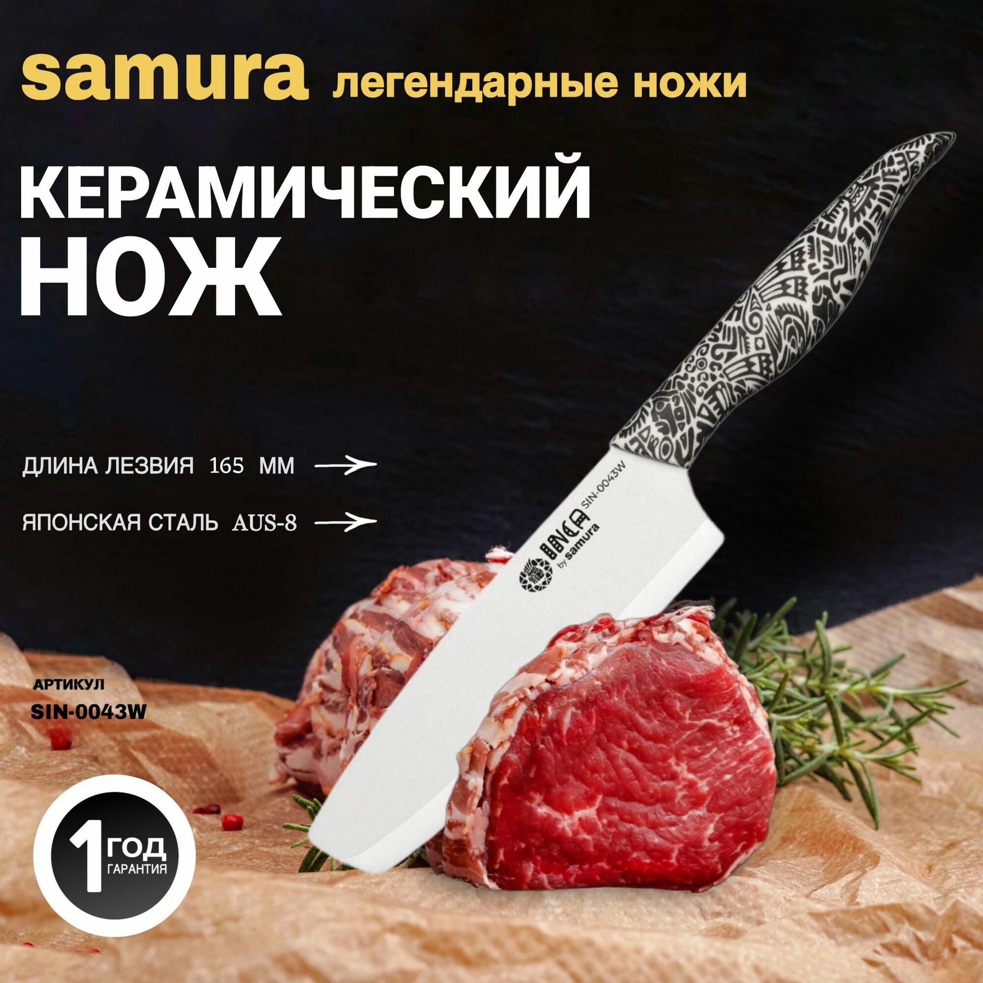 Кухонный нож Samura Inca, керамика, длина лезвия 16.5 см SIN-0043B