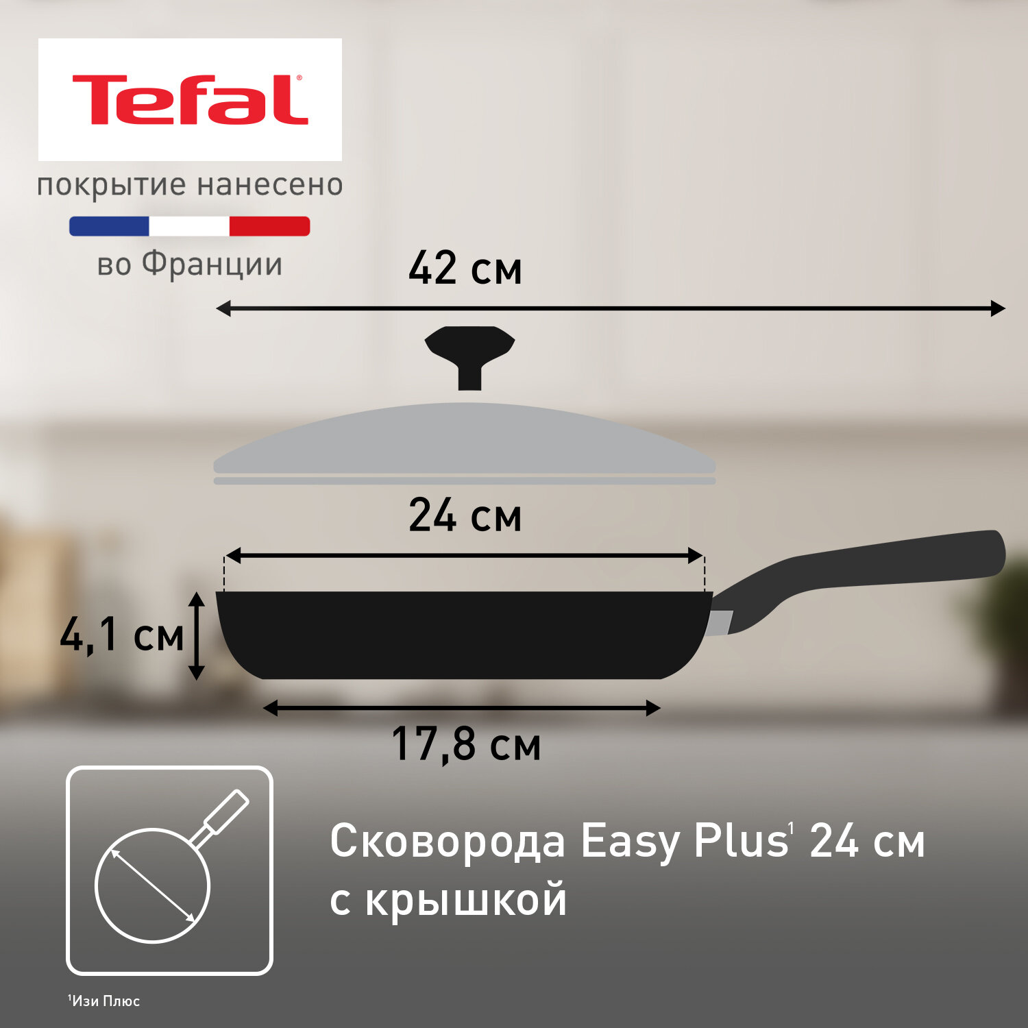 Купить Сковорода с крышкой Tefal Easy Plus 04237924, 24 см, с антипригарным покрытием, для всех типов плит кроме индукции