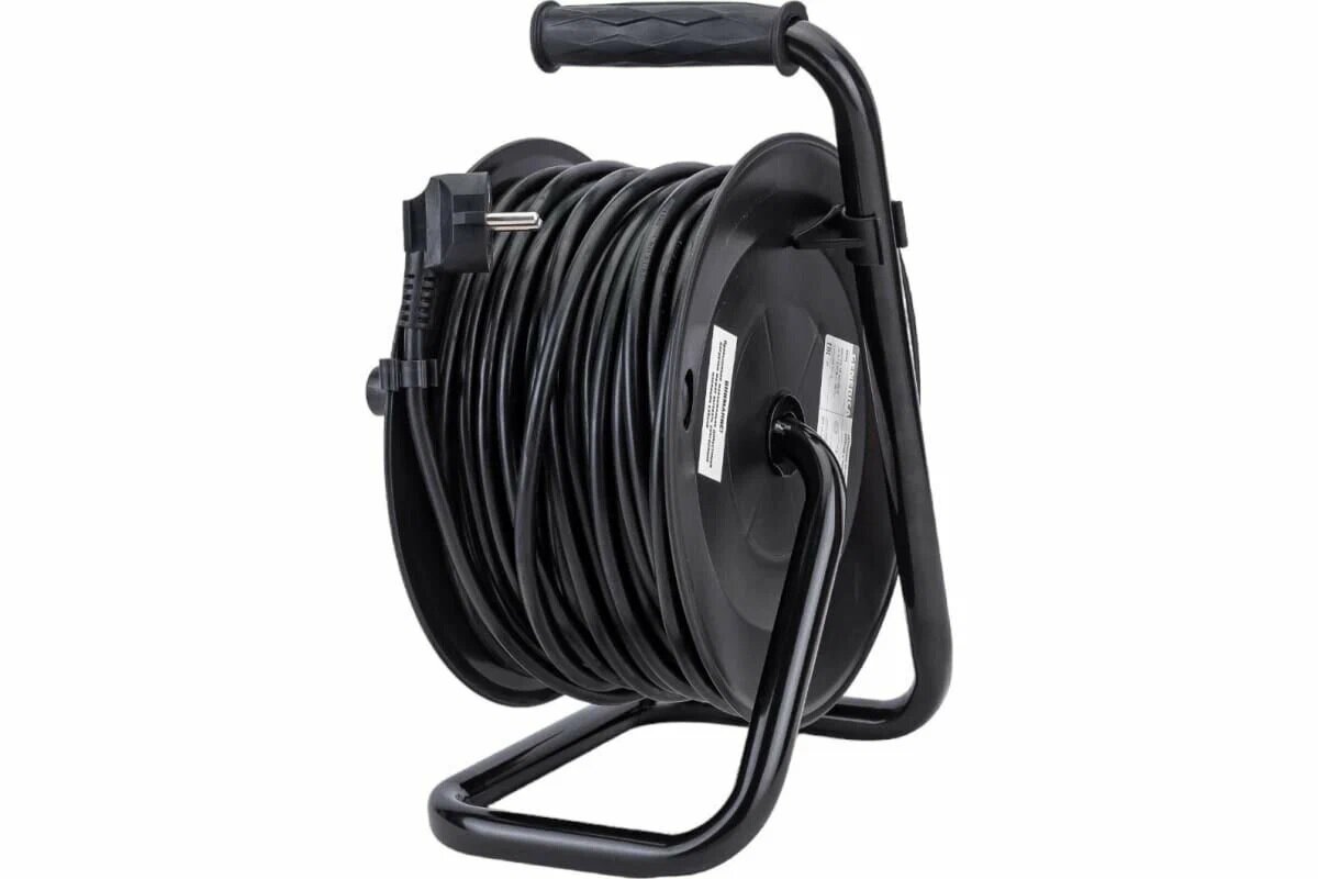 Удлинитель силовой на катушке Generica / Дженерика УК20 с термозащитой 2P+PE, провод ПВС 3х1.5, 4 розетки черный, 20м, WKP20-16-04-20-G / электрика