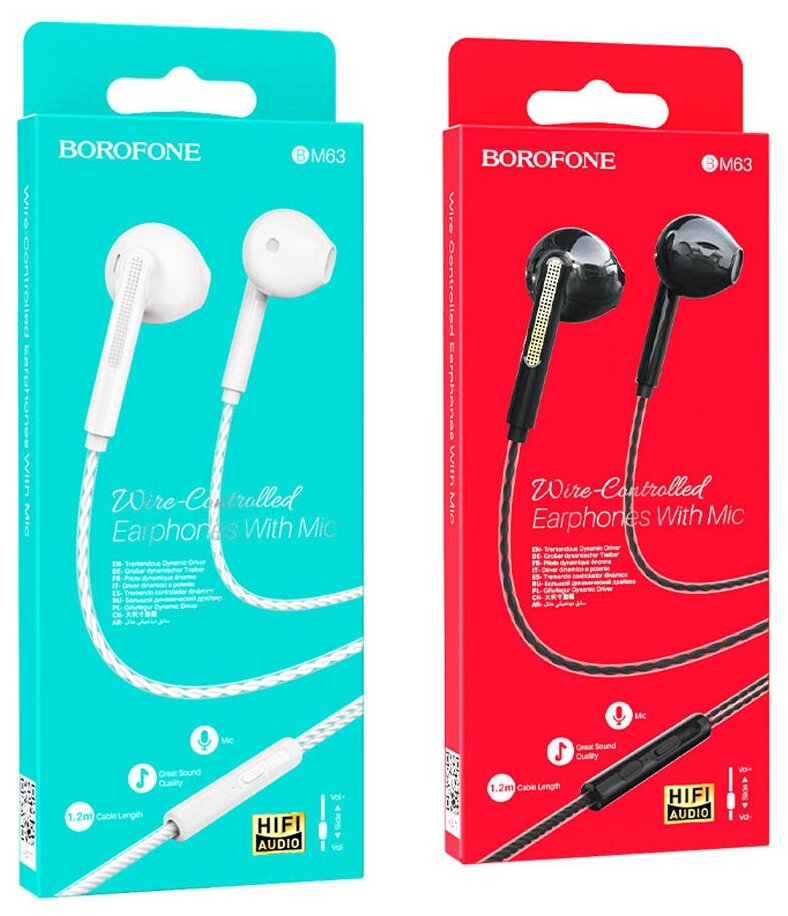 Наушники внутриканальные Borofone BM63, Melodic, микрофон, кнопка ответа, регулятор громкости, кабель 1.2м, цвет: чёрный