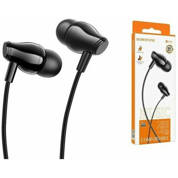 Наушники Borofone BM61 Wanderer, вакуумные, микрофон, Jack 3.5 мм, кабель 1.2 м, чёрные