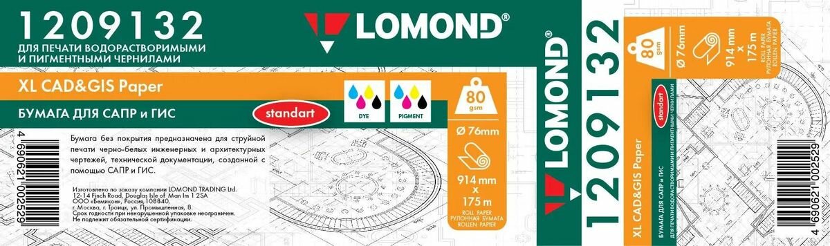 Купить Бумага Lomond инженерная "Стандарт", инженерная, 914мм х 175м, втулка 50.8мм (2"), 80г/м2, белый, покрытие матовое [1209132]