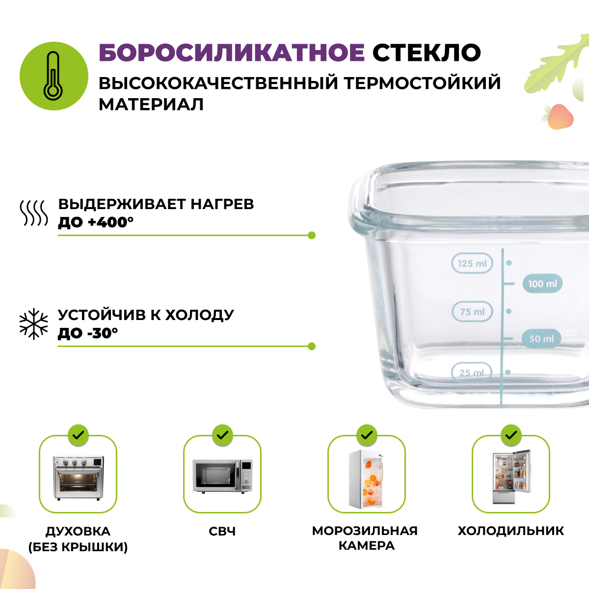 СохранитьНабор контейнеров для хранения еды Eley из жаропрочного стекла 4 штуки, 160 мл, квадратные интересное: