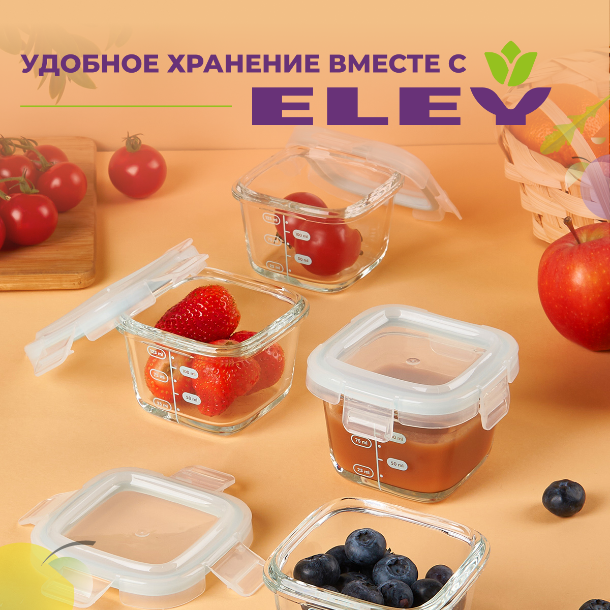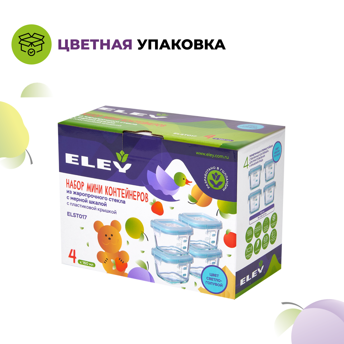 Купить Набор контейнеров для хранения еды Eley из жаропрочного стекла 4 штуки, 160 мл, квадратные
