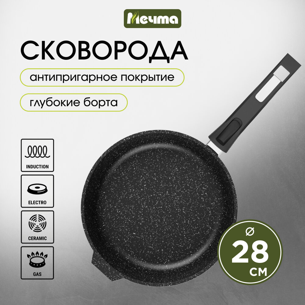 Купить Сковорода Мечта 28 см Гранит с антипригарным покрытием со съемной ручкой, индукционная