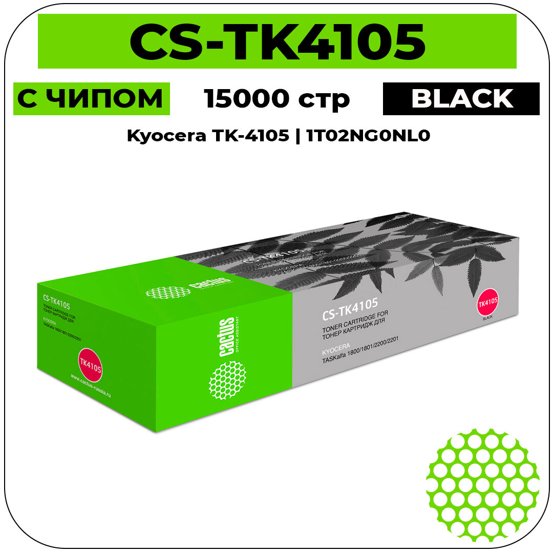 Тонер-картридж CACTUS (CS-TK4105) для KYOCERA TASKalfa 1800/2200/1801/2201, ресурс 15000 стр.