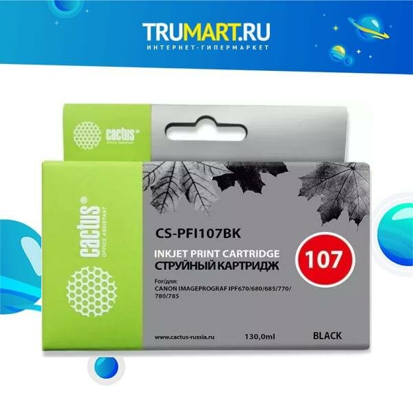 Картридж Cactus CS-PFI107BK черный (130мл) для Canon IP iPF670/iPF680/iPF685/iPF770/iPF780