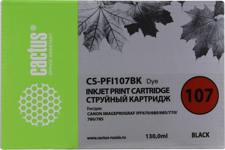 Cactus Расходные материалы PFI-107BK Картридж струйный для Canon IP iPF670 iPF680 iPF685 iPF770 iPF780 iPF785 черный 130мл