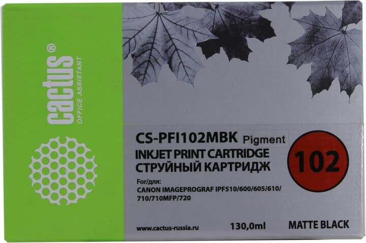 Картридж струйный Cactus CS-PFI102MBK PFI-102MBK черный матовый (130мл) для Canon iPF500/iPF600/iPF700/ MFP M40/iPF765/LP17/LP24