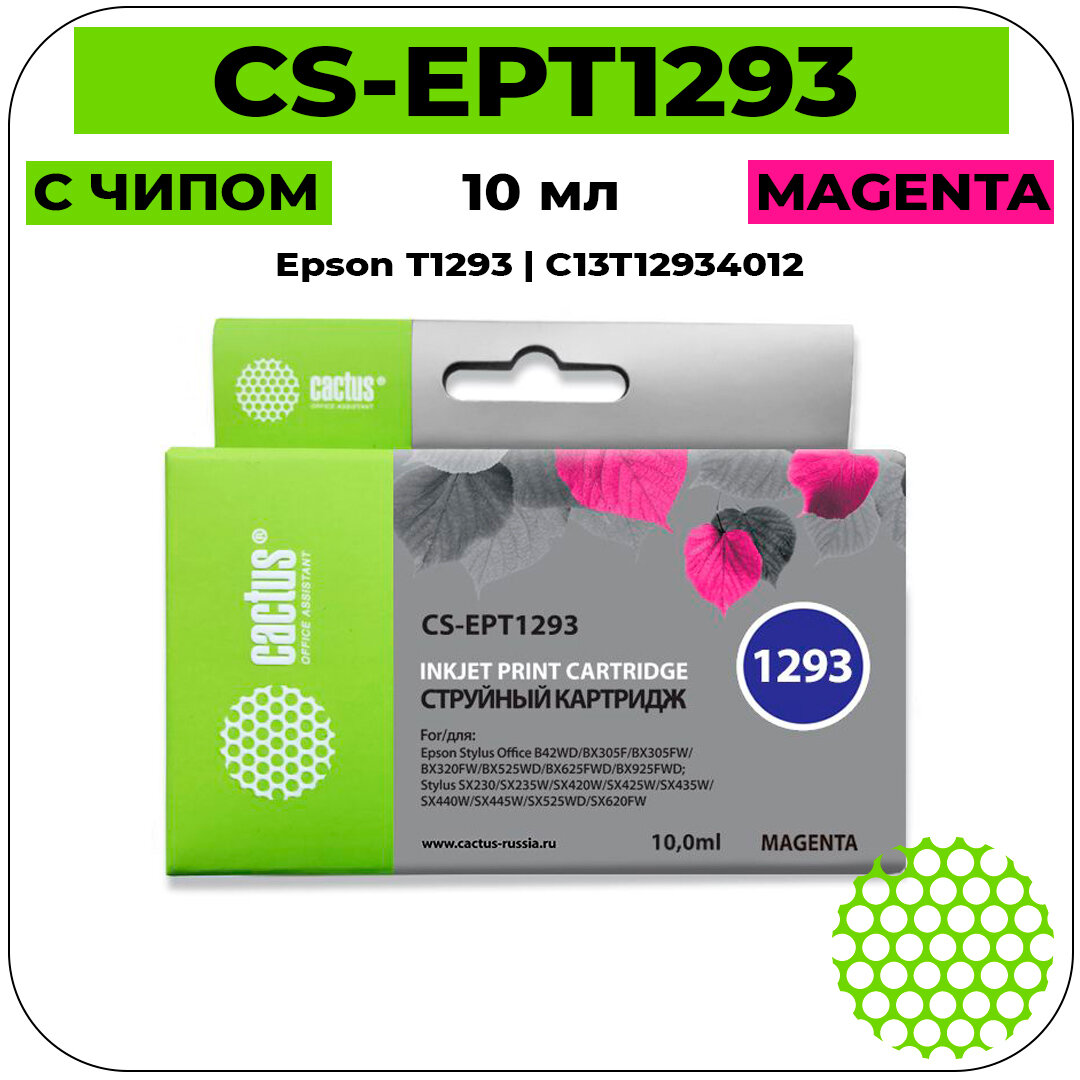 Картридж струйный Cactus CS-EPT1293 T1293 пурпурный (10мл) для Epson B42/BX305/BX305F/BX320/BX525/BX625/SX420/SX425/SX525/SX622