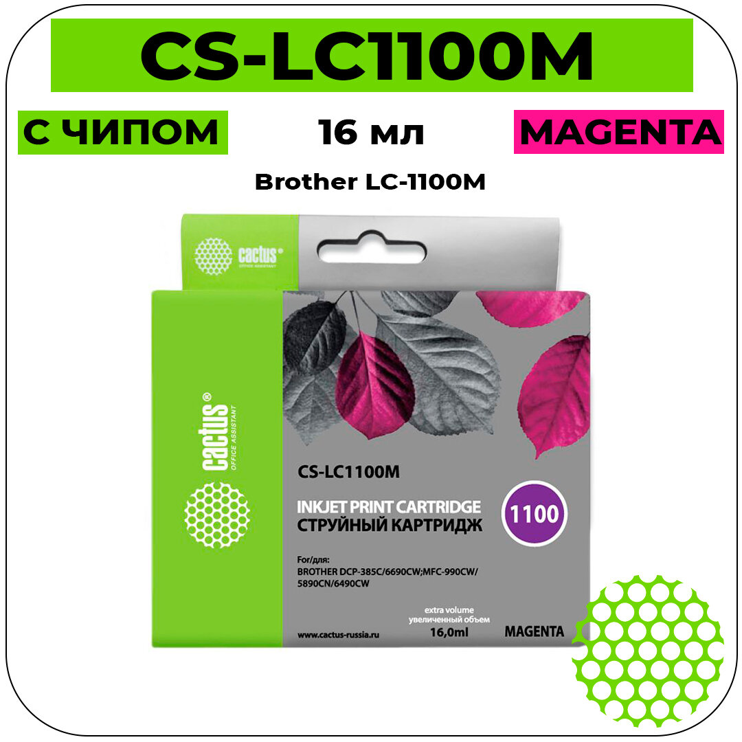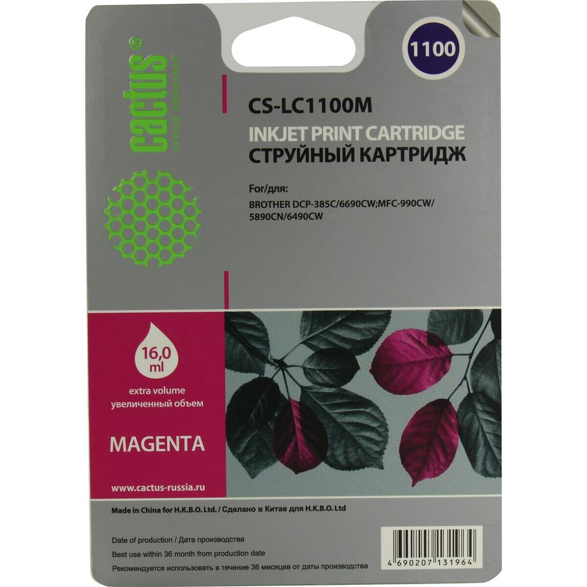 Картридж струйный Cactus CS-LC1100M пурпурный (16мл) для Brother DCP-385c/6690cw/MFC-990/5890/5895/6490