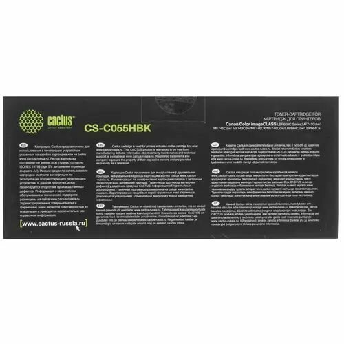 Картридж лазерный CACTUS (CS-C055HBK) для Canon LBP663Cdw/664Cx/MF746Cx/742Cd, черный, ресурс 7600 страниц (арт. 364054)