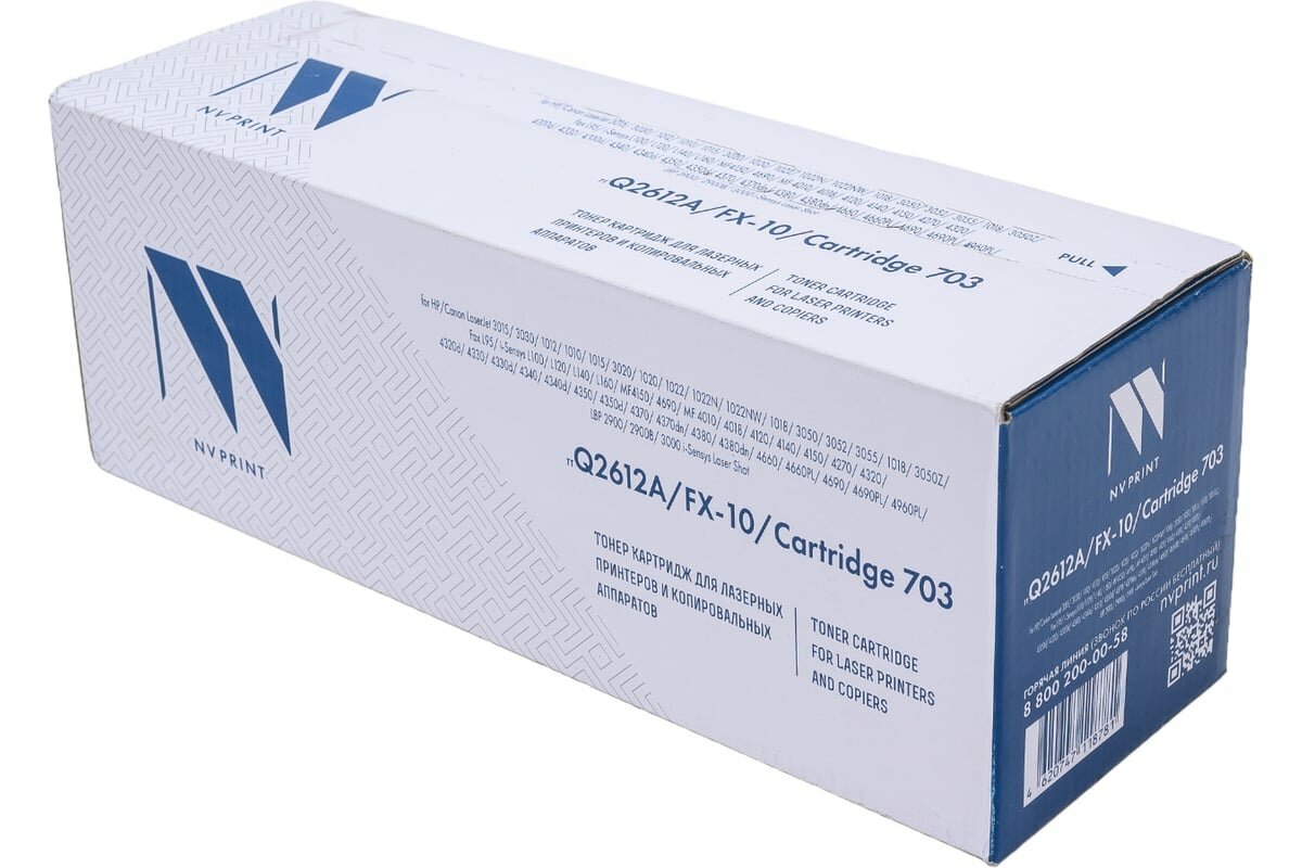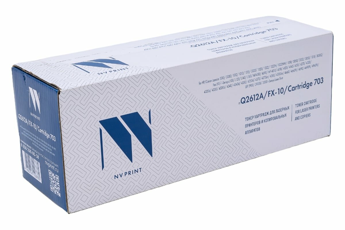 Картридж NV Print NV-Q2612A/FX10/703, черный, 2000 страниц, совместимый для LJ M1005/M1319f/3050/3050z/3015/3020/3030/M1120/M1120n/1010/1012/1015/1020/1022/1022n/1022nw, LJ Pro M521dw, MultiPass L100/L120/MF4010/4018/4120/4140/4150/4270/4320D