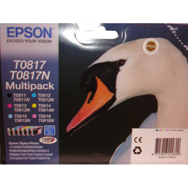 Комплект картриджей EPSON T0817 (C13T08174A10/ C13T11174A10) для Epson ST R270/R290/RX590 MultiPack (Bk/C/M/Y/PC/PM) оригинал