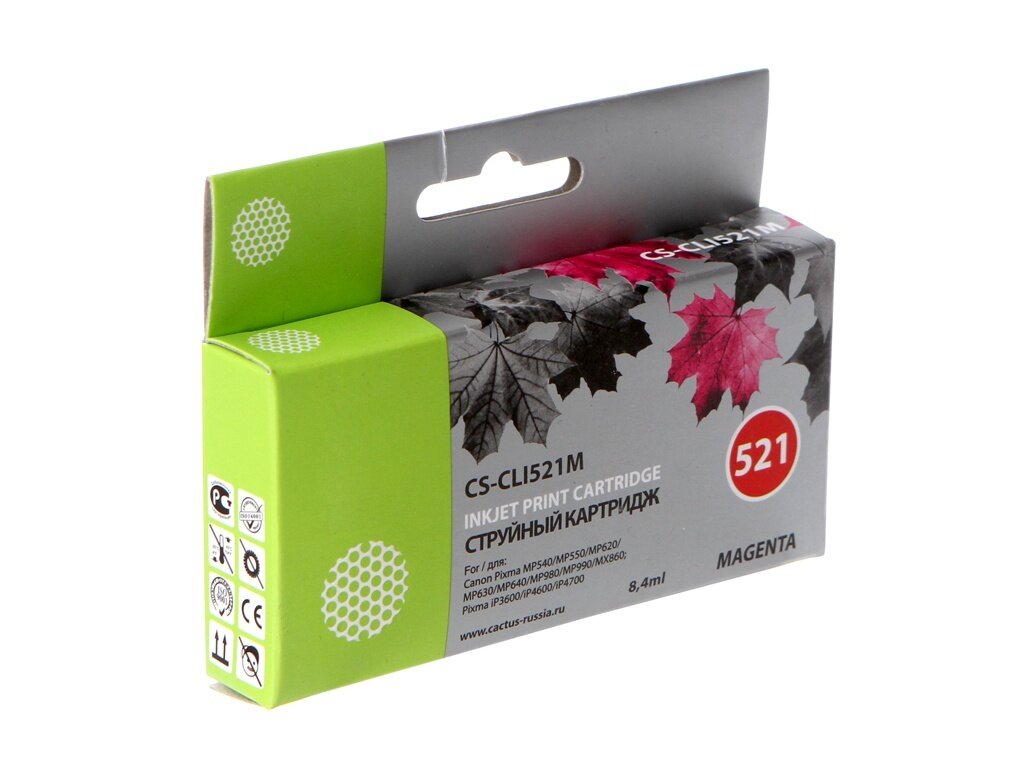 Картридж струйный Cactus CS-CLI521M пурпурный (8.4мл) для Canon Pixma MP540/MP550/MP620/MP630/MP640/MP980/MP990/MX860/iP3600/iP4600/iP4700