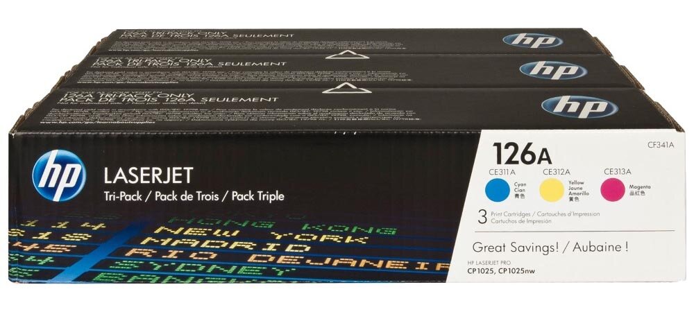 Набор картриджей HP 126A (CF341A), тройной комплект, голубой/пурпурный/желтый