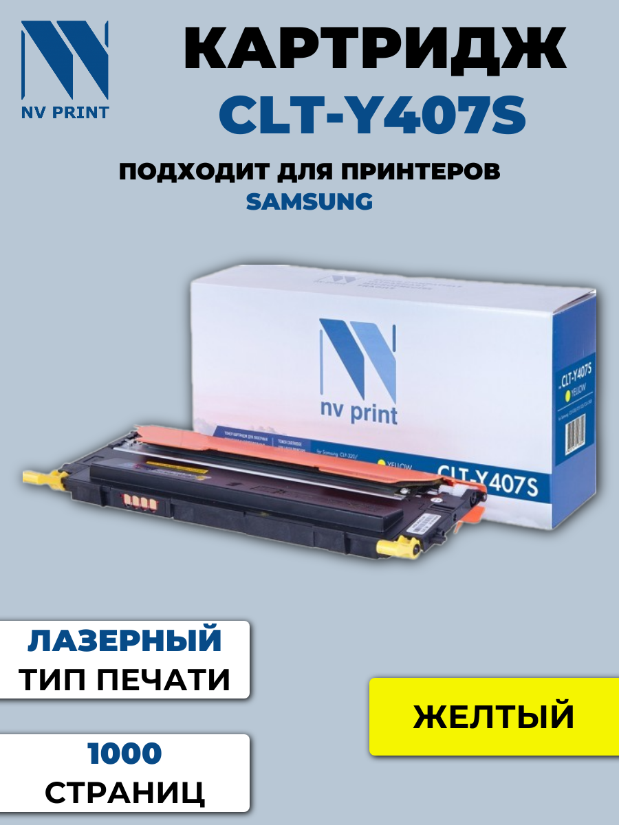 Картридж NV Print CLT-Y407S Желтый для принтеров Samsung CLP-320/ CLP-325/ CLX-3185, 1000 страниц