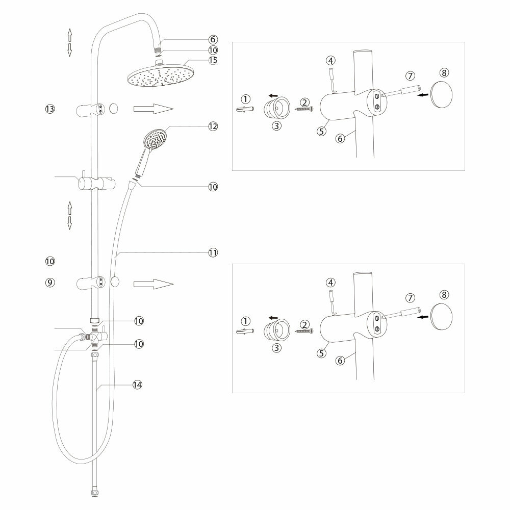 | Комплектация | душевая лейка - 1 шт. / верхний душ - 1 шт. / штанга для душа - 1 шт. / шланг для душа - 1 шт. / комплект крепления |
