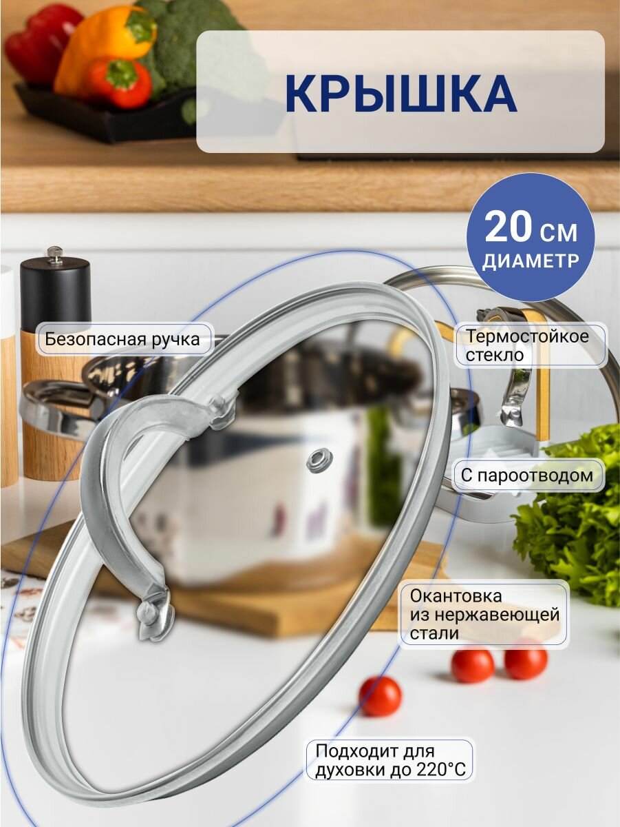 Кастрюля GASTRORAG PE20-11.5 объемом 3,4 л со стеклянной крышкой, нержавеющая сталь, металлическая посуда для кухни