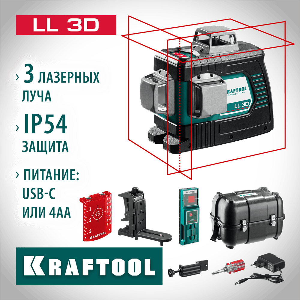 KRAFTOOL LL 3D #4,Лазерный нивелир (34640-4)