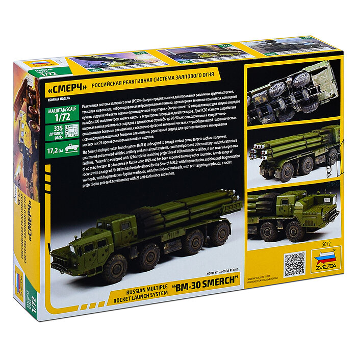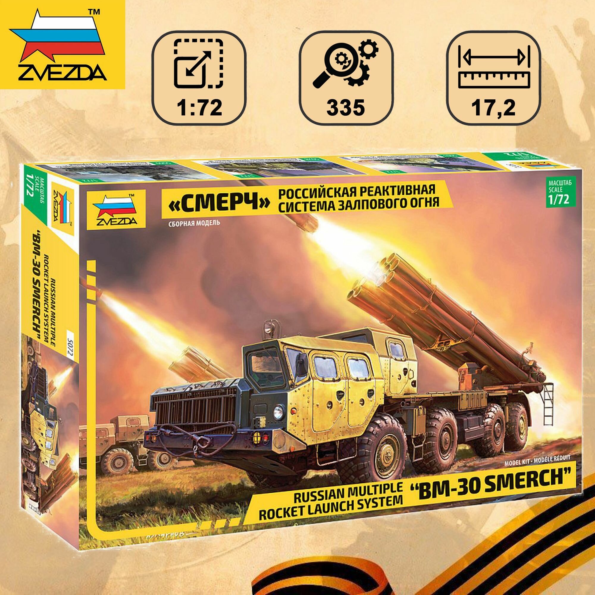 Звезда 5072 БМ-30 "Смерч" Российская реактивная система залпового огня. Модель для сборки в масштабе 1/72.