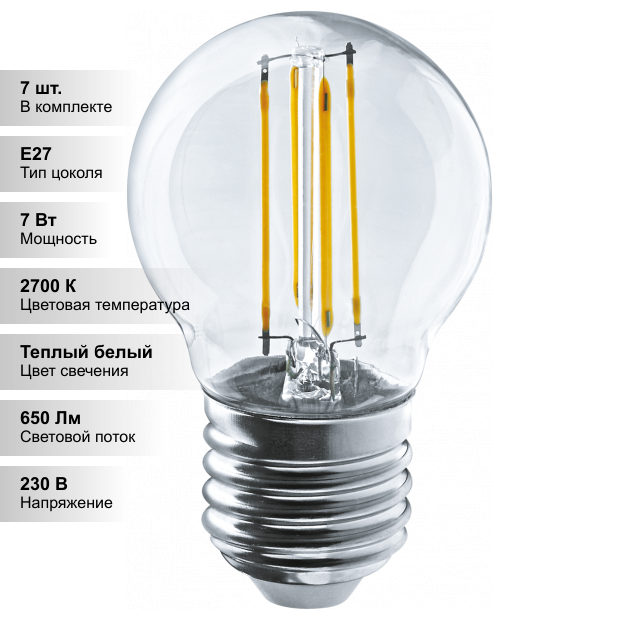 Сохранить(7 шт.) Лампа Navigator 80 530 NLL-F-G45-7-230-2.7K-E27 интересное: