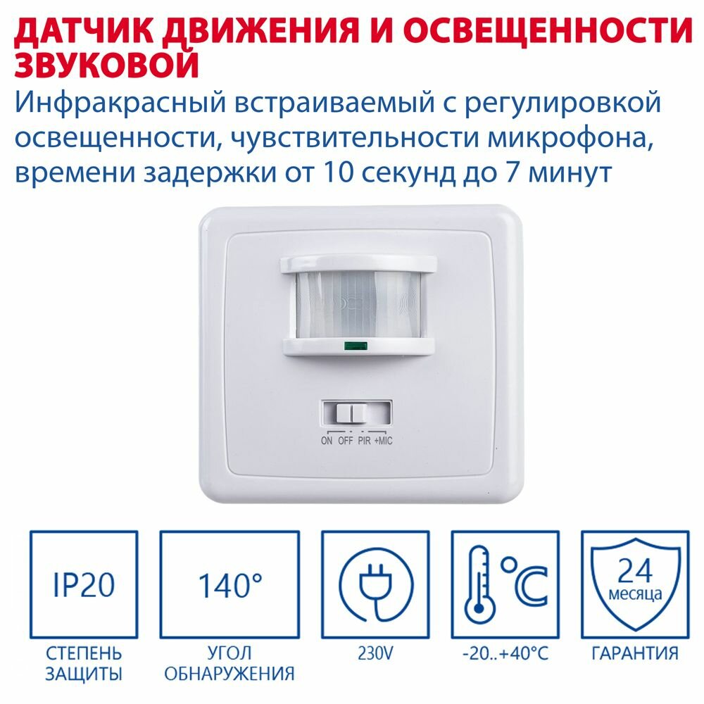 LX-2000/SEN1A, датчик движения, 500W, DD=12m, белый, 140°