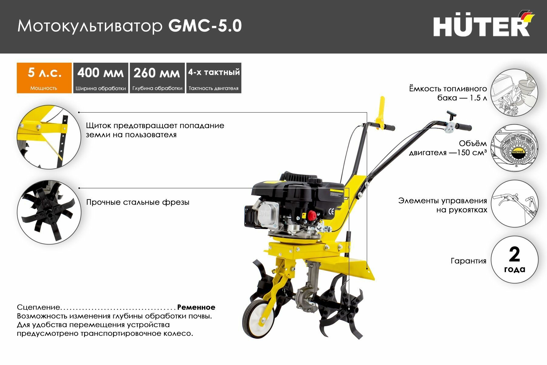 Ниже Вы можете прочитать отзывы на Мотоблок / Мотокультиватор / Культиватор бензиновый HUTER GMC-5.0 (5 л.с., четырехтактный, бензин, бак - 1.5 л, ширина – 40 см), ознакомится с подробными характеристиками, посмотреть интересные обзоры и фотографии на Мотоблок / Мотокультиватор / Культиватор бензиновый HUTER GMC-5.0 (5 л.с., четырехтактный, бензин, бак - 1.5 л, ширина – 40 см).