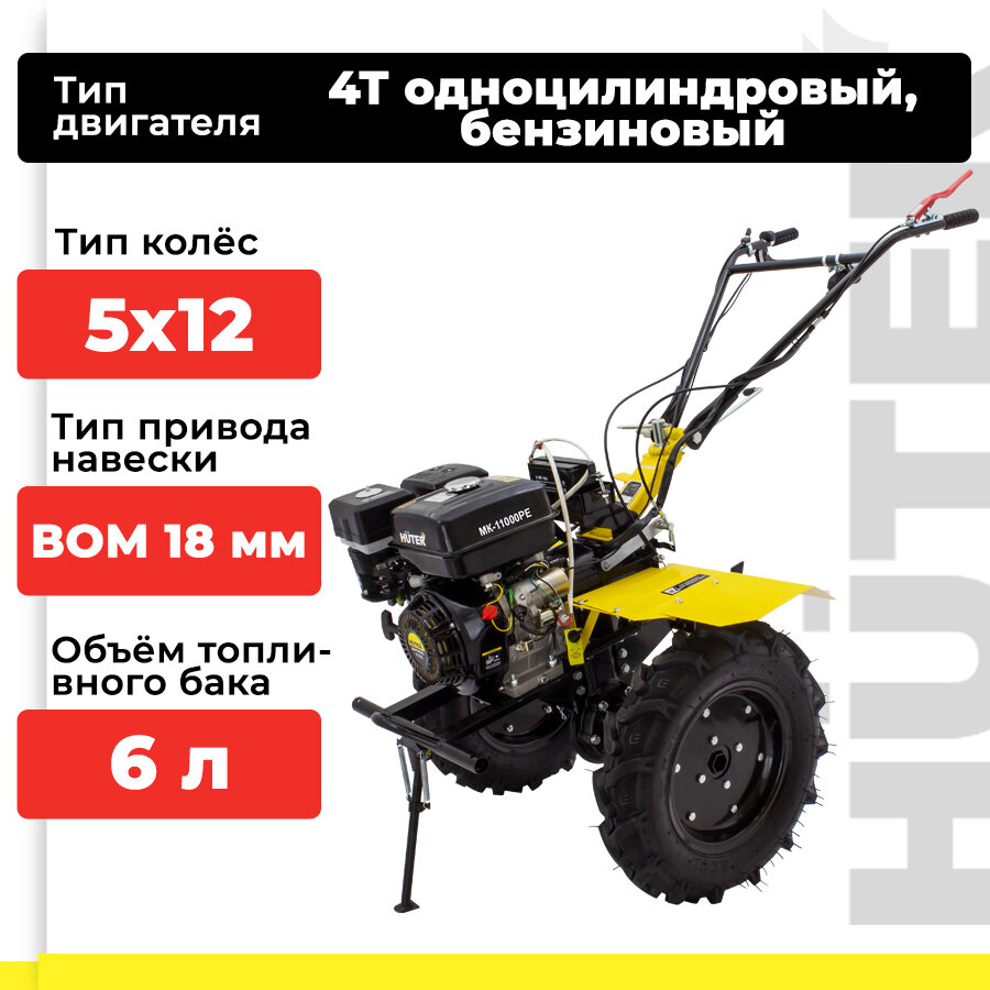Купить Мотоблок / Сельскохозяйственная машина HUTER MK-11000PЕ (11 л.с., четырехтактный, электростартер, бензин, бак – 6 л, ширина – 115 см)