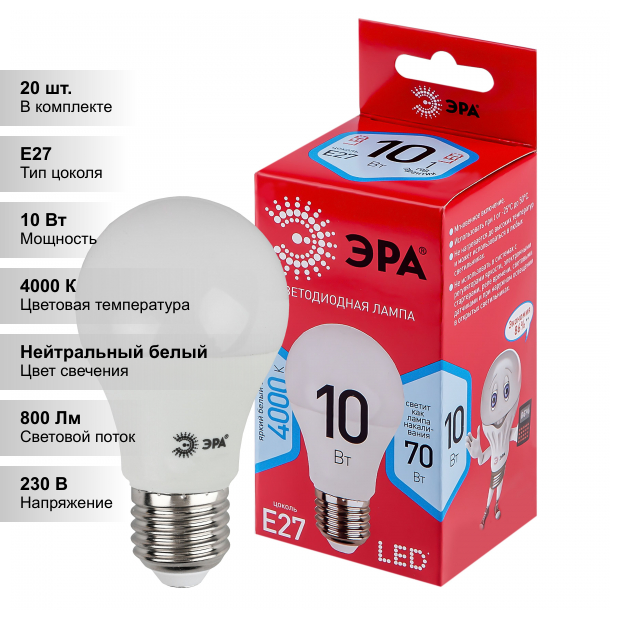 (20 шт.) Светодиодная лампочка ЭРА LED A60 10Вт 4000К E27