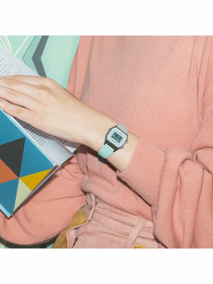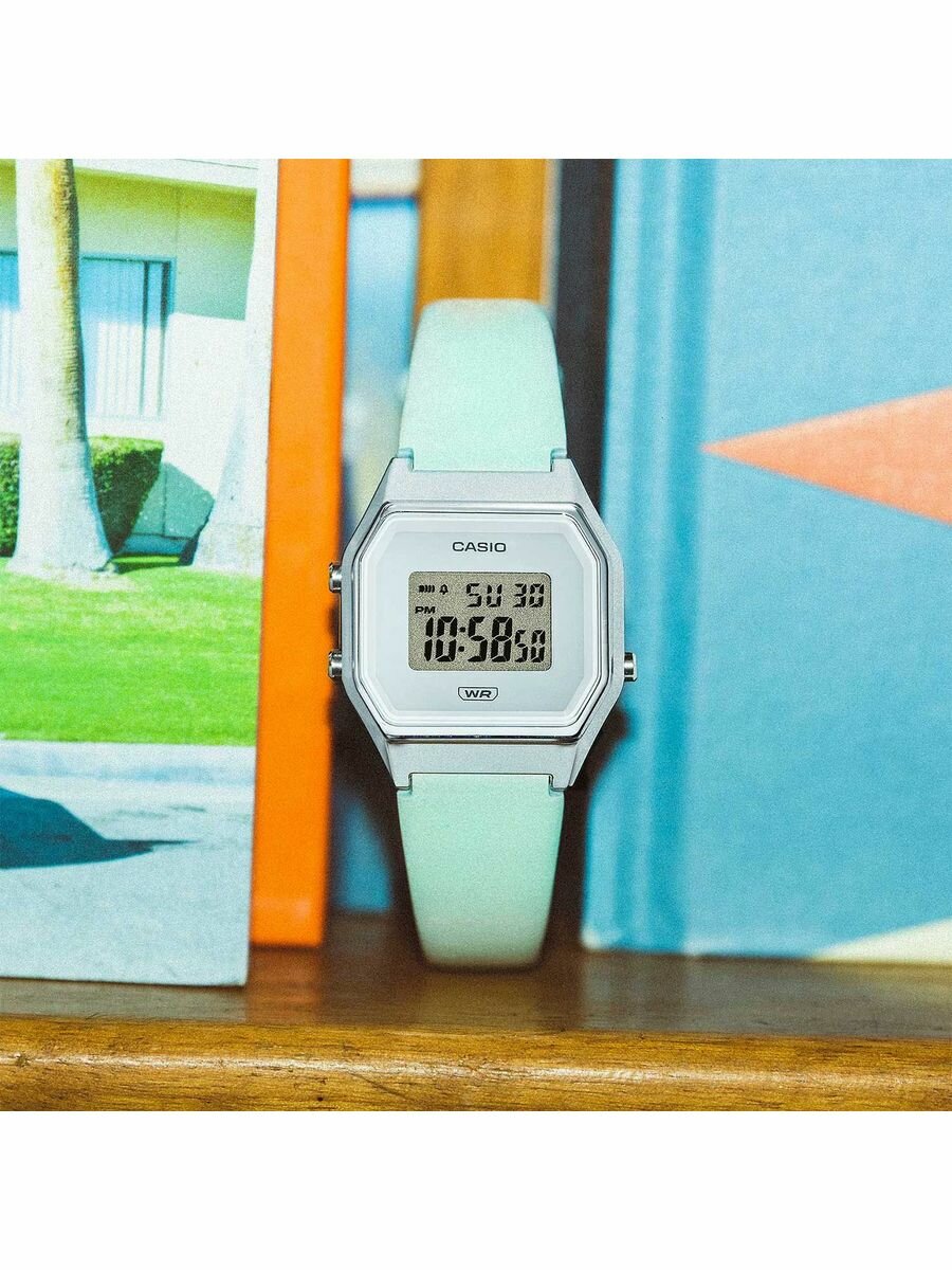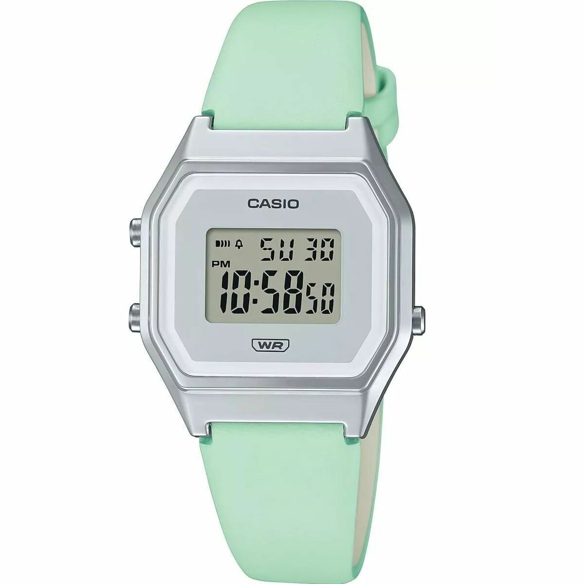 LA680WEL-3D Casio наручные часы кварцевые WR30 (3 атм) женские серебряный, зеленый секундомер будильник отображение дня недели, отображение числа подсветка дисплея акриловое стекло