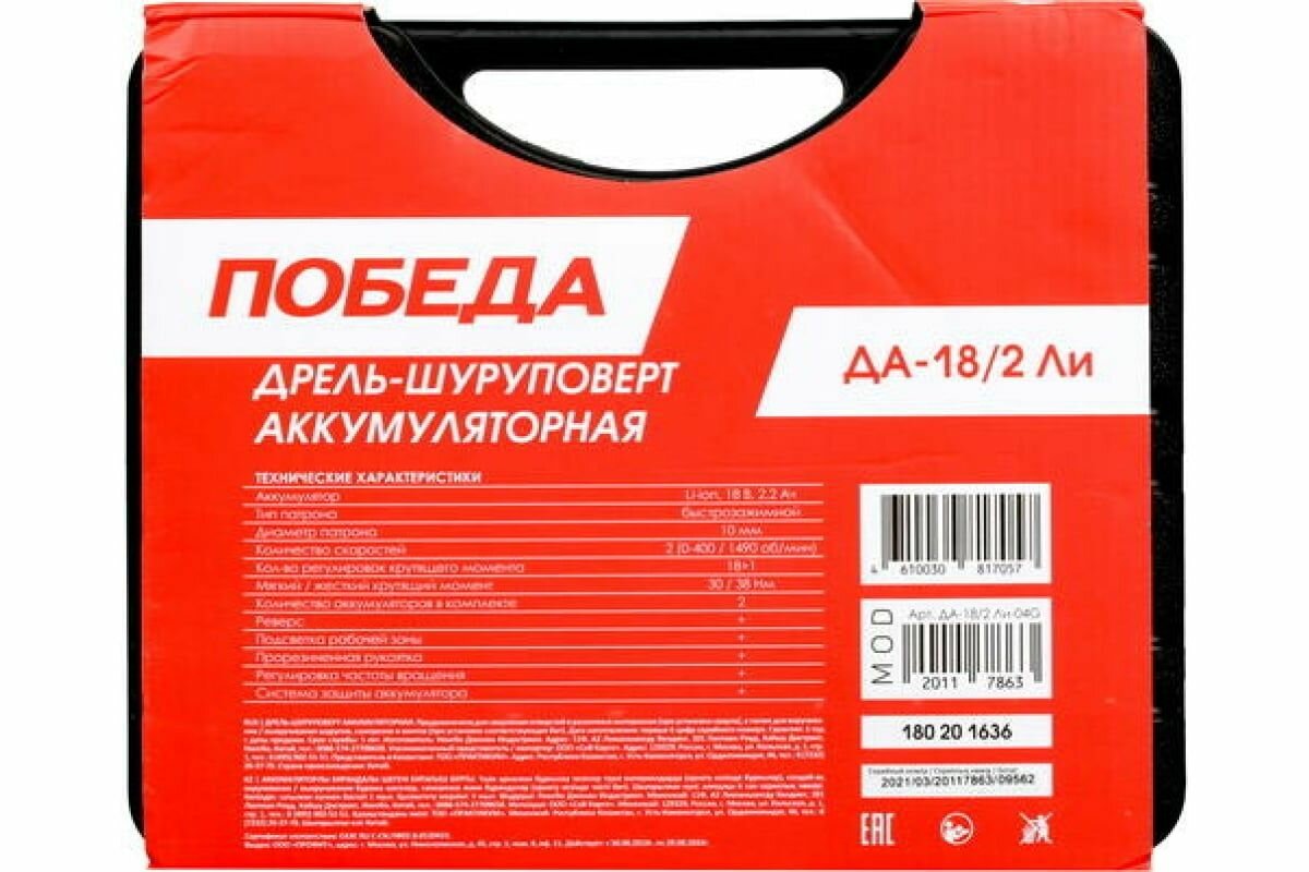 Аккумуляторная дрель-шуруповерт победа ДА-18/2 Ли 180201636