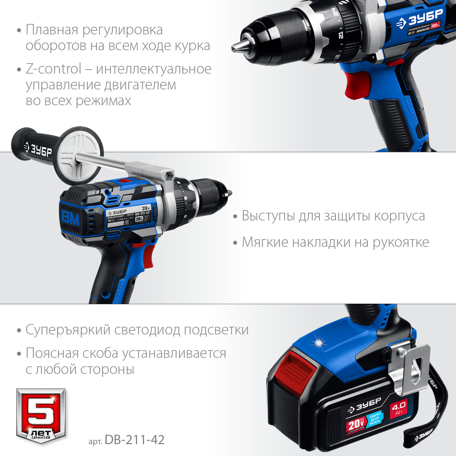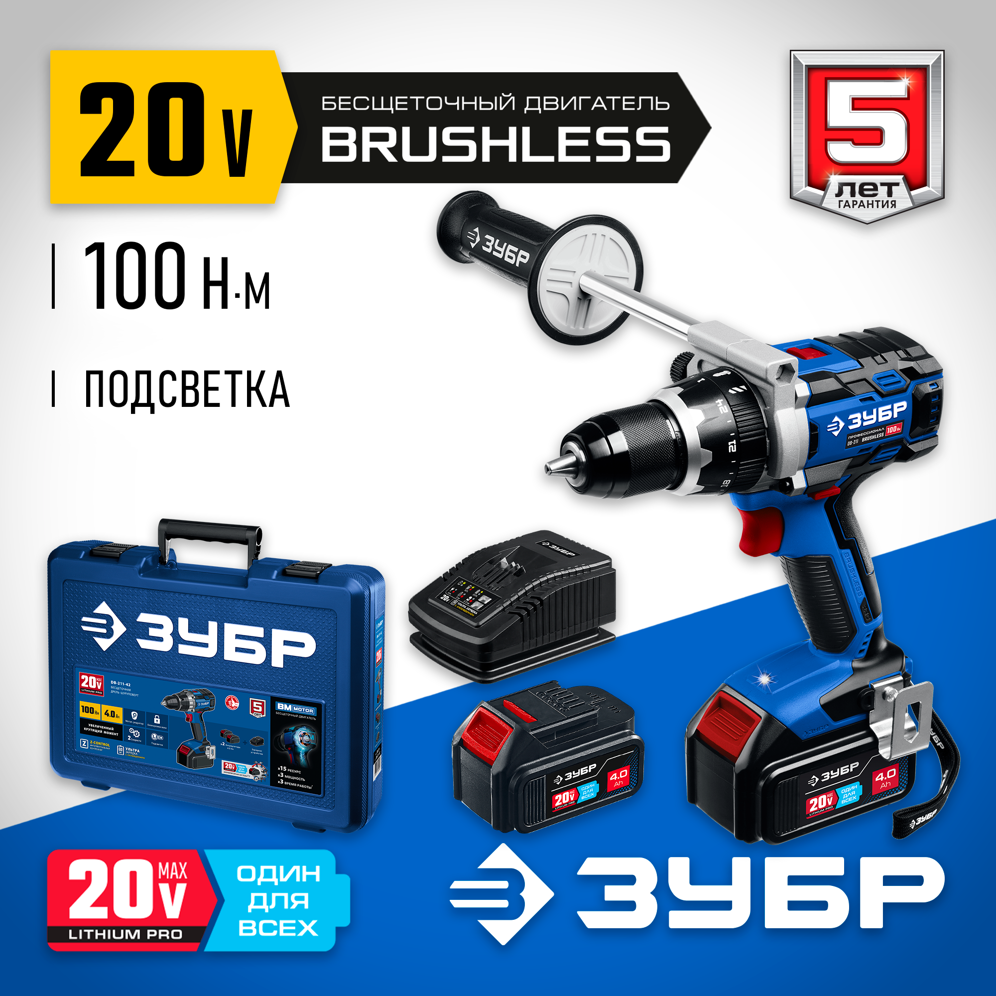 Дрель-шуруповерт "Зубр. DB-201", 20 В, бесщеточная
