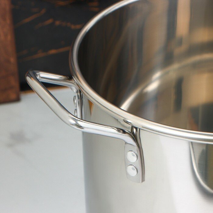 Кастрюля «Общепит», d=30 см, h=23 см, 15 л, сварная, с клёпаными ручками, металлическая крышка, цвет серебряный