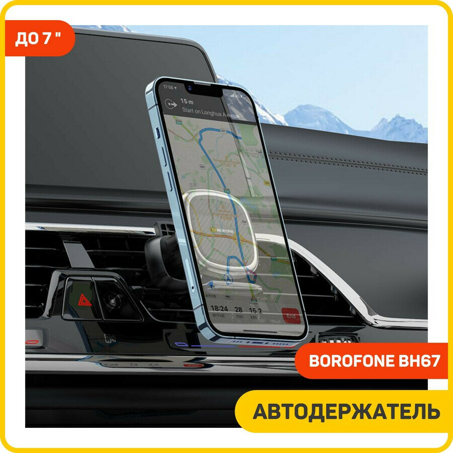 Автодержатель универсальный Borofone BH67, магнитный в воздуховод, черно-серый