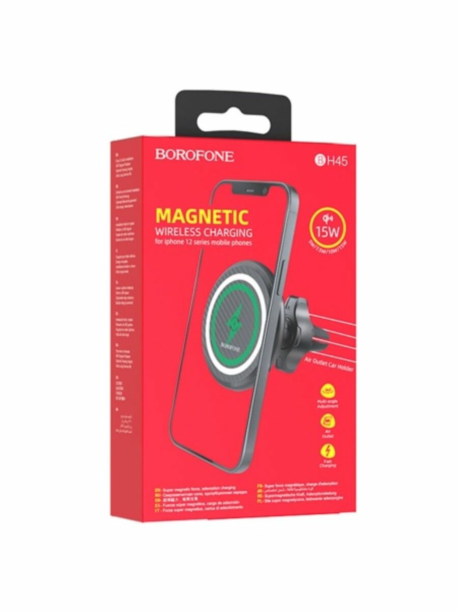 Держатель c беспроводной зарядкой в воздуховод Borofone BH45 (MagSafe) 15W магнитный черный