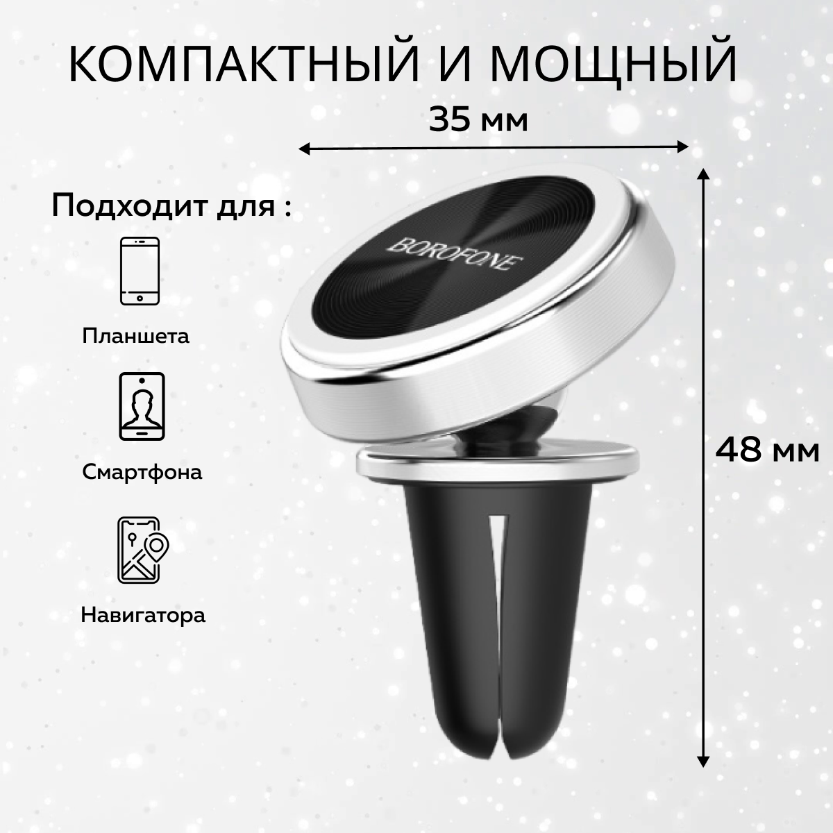 Автомобильный держатель BOROFONE BH6 Platinum, магнитный, на воздуховод, серебряный
