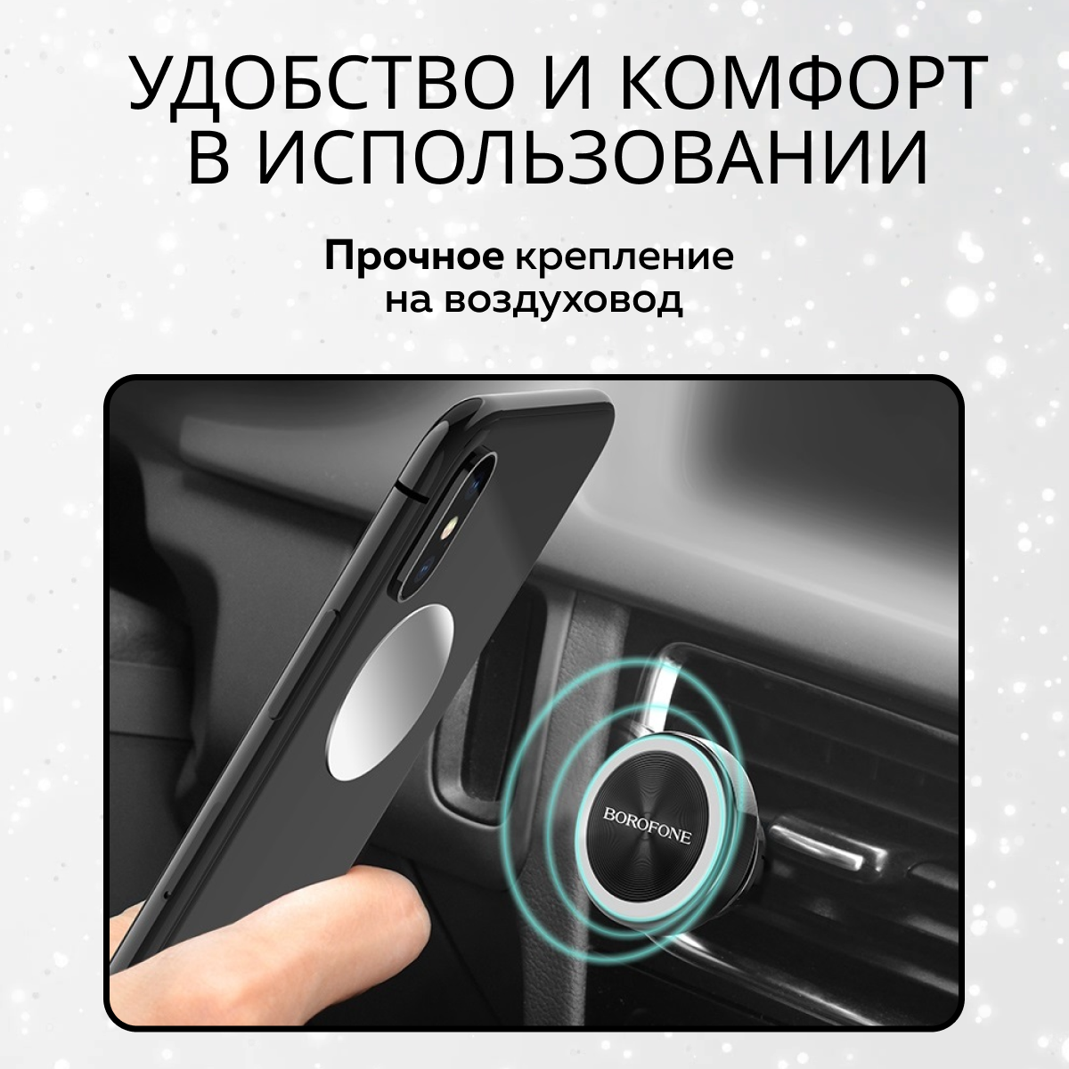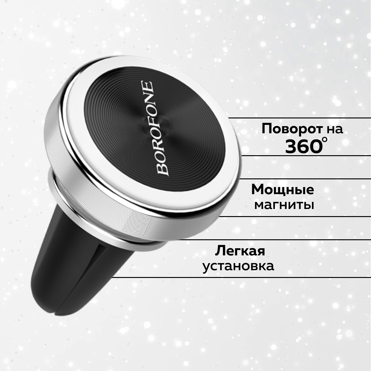 Автомобильный держатель BOROFONE BH6 Platinum, магнитный, на воздуховод, черный