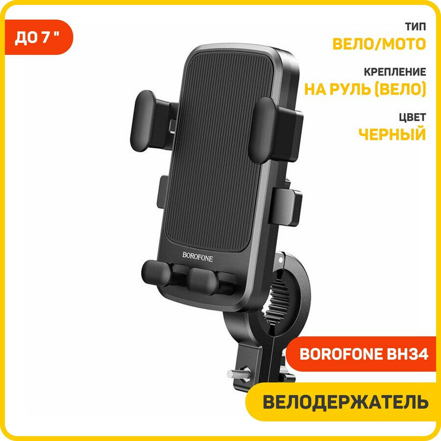 Держатель для телефона Borofone BH34 на руль велосипеда и мотоцикла, универсальный, черный