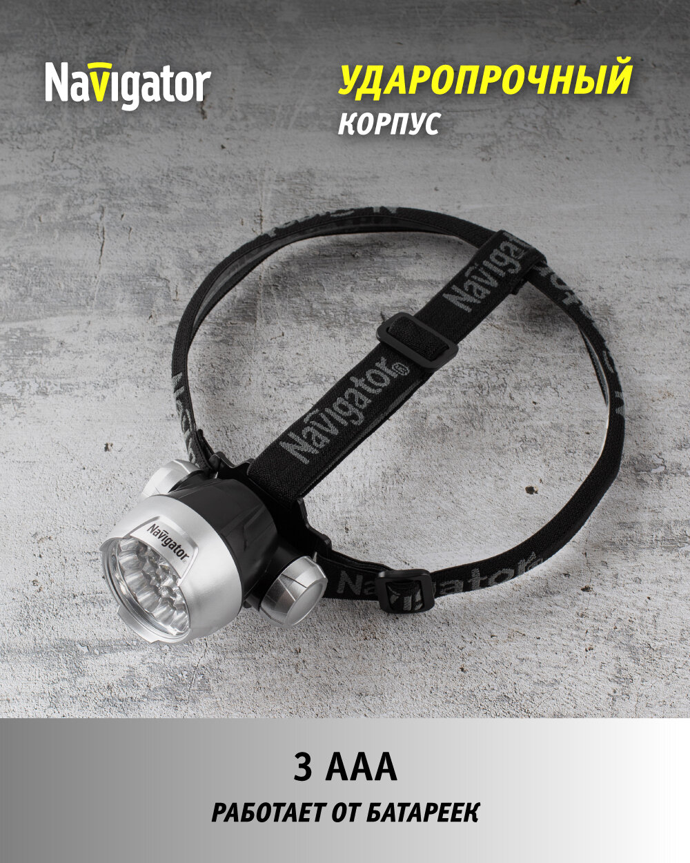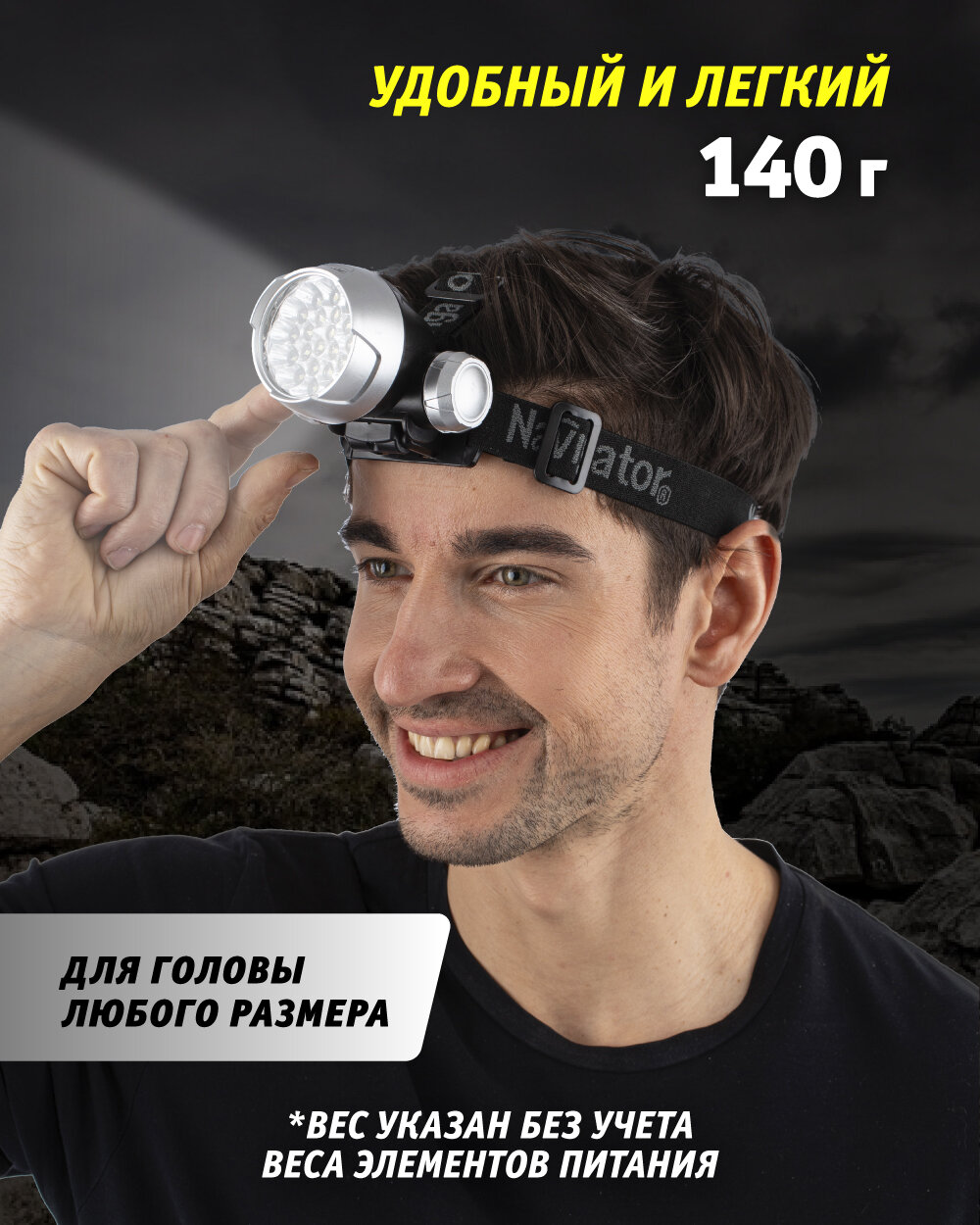 Фонарь налобный Navigator 94 946 NPT-H01, работает от батареек 3ААА интересное: