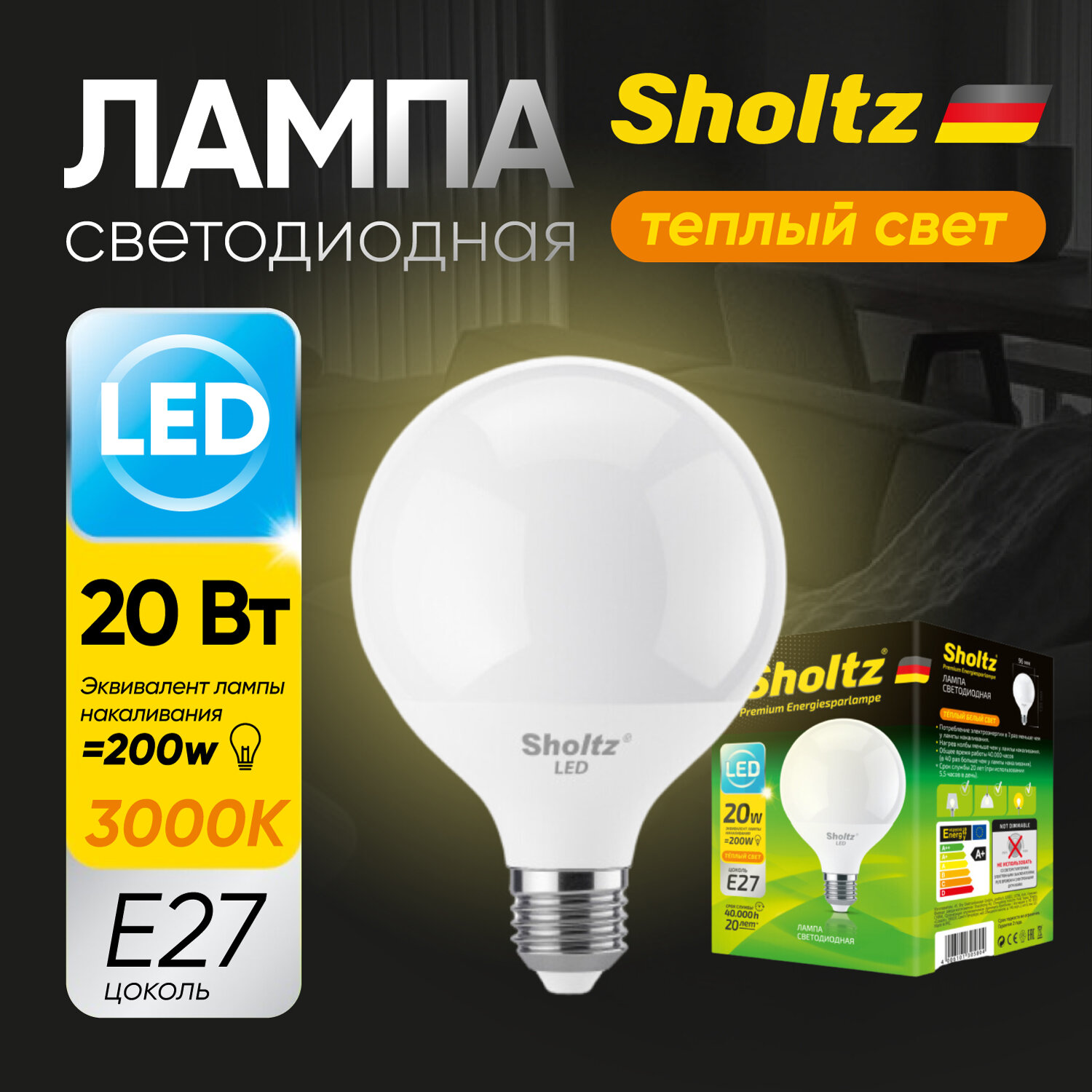 Sholtz Лампа светодиодная глобус G95 20Вт E27 3000К 220В LEG3058